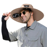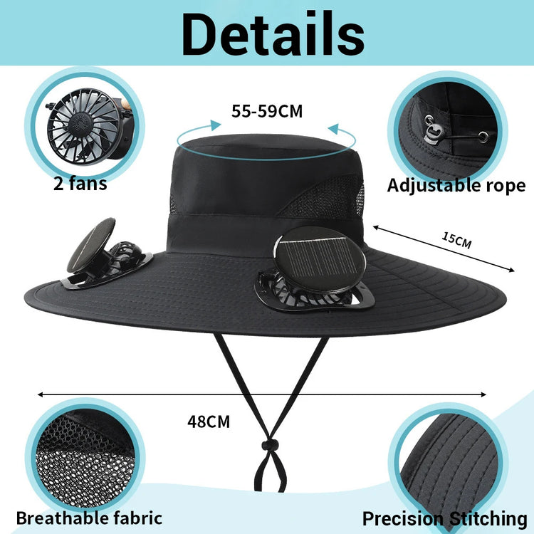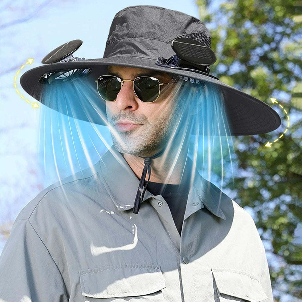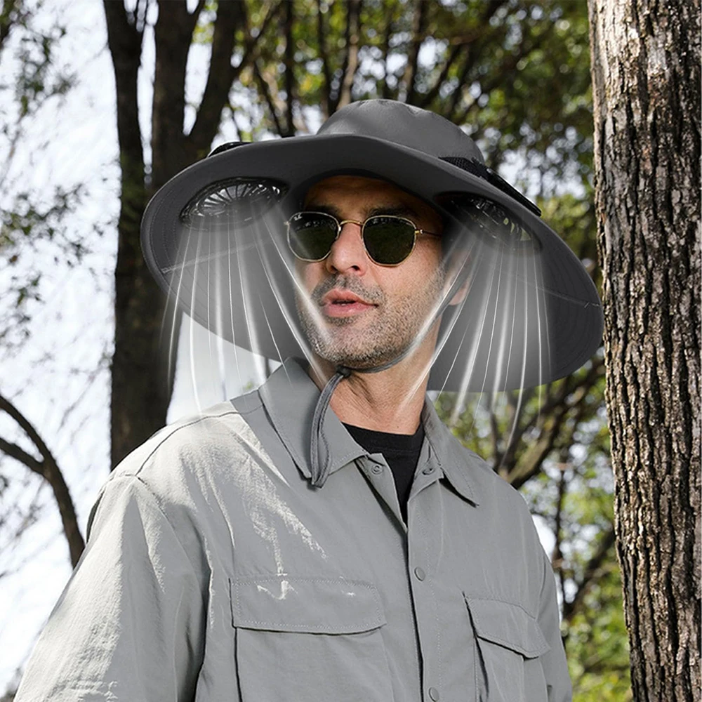 Outdoor Wide Brim Sun Hat with 2 Solar Fans Sun Bucket Hat Fishing Cap for Men Women UPF 50+ Bucket Hat Cap for Hunting Camping Fishing