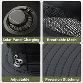 【Two Power Supply Modes for Fan Hats】Our sun hat with fan offers two power supply modes: solar power or USB charging. In solar mode, the fan starts automatically when exposed to sunlight. For continuous airflow, the solar USB charger fan battery mode provides 6 hours of runtime with its fan blades, ensuring lasting comfort in any situation.