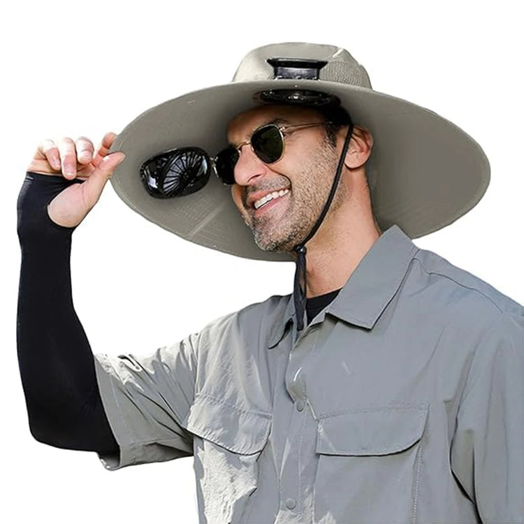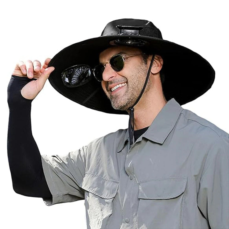 【Ultimate Sun Protection - Fishing Hat With Fans】Our solar fan hat combines a large shielding area with UPF50+ fabric, blocking direct sunlight and providing superior protection. In outdoor tests, the UPF50+ rating effectively blocks 98% of UV rays. With this hat, outdoor work becomes a breeze!