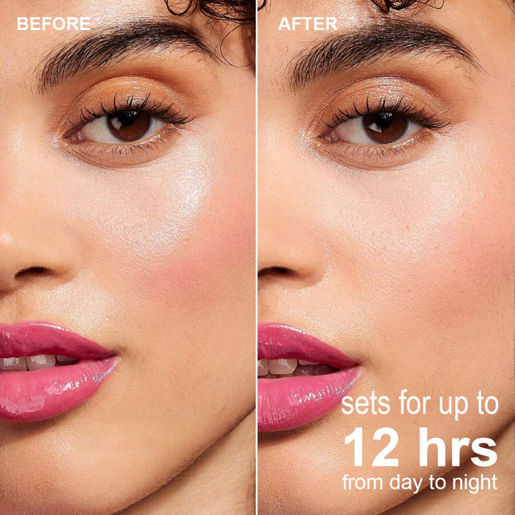 SPRITZ ON SPONGES & BRUSHES TO HELP SET PRODUCTS AS YOU LAYER