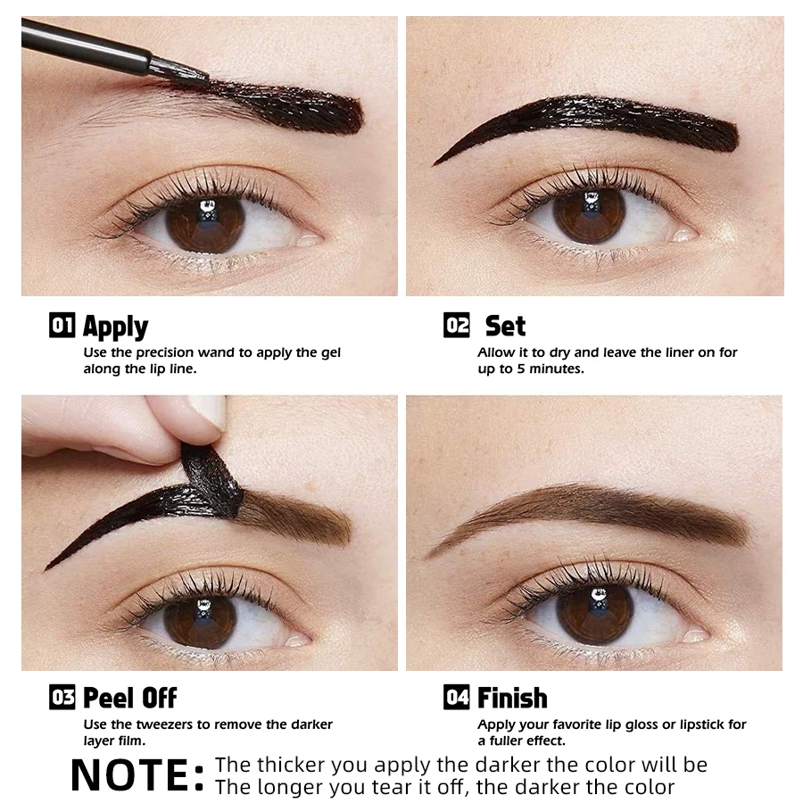 Easy to applyand peel off-Use an eyebrow brush to evenly apply eyebrow cream to the eyebrows, wait for 20 minutes, and then gently peel off the eyebrow gel from the inside and outside of the eyebrows.