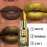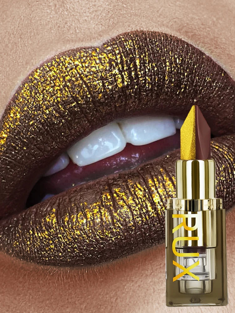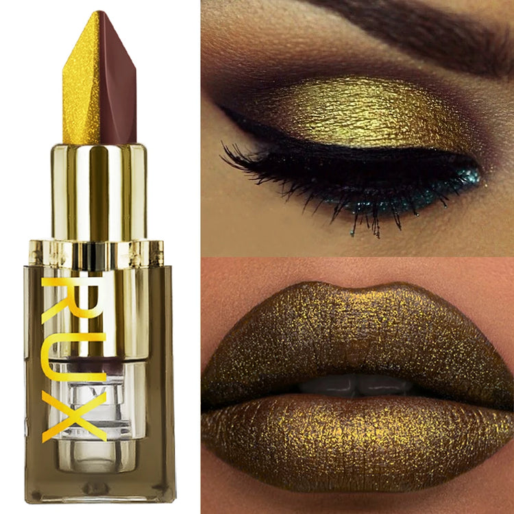 1PC Sexy Red&yellow Glitter Shiny Metallic Lipstick Pearlescent Eye Shadow Long Lasting Lip Tint,Waterproof Lip&Eye Makeup Gifts