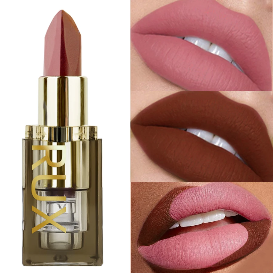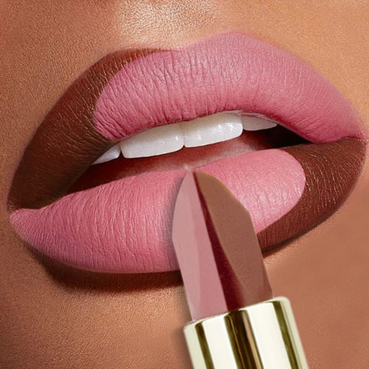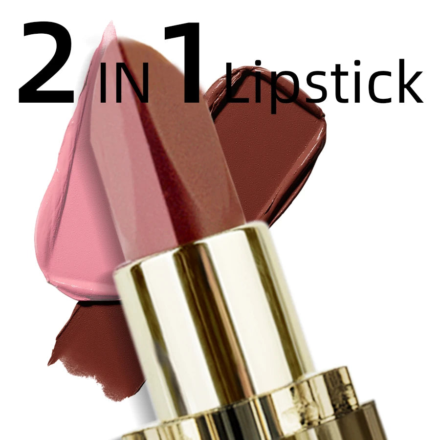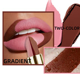 1pc Two-tone Matte Lipstick Pink Waterproof lip Makeup easy to use Lipstick Refill Lip Tint,Long Lasting Lip Senior Cosmetic Gif