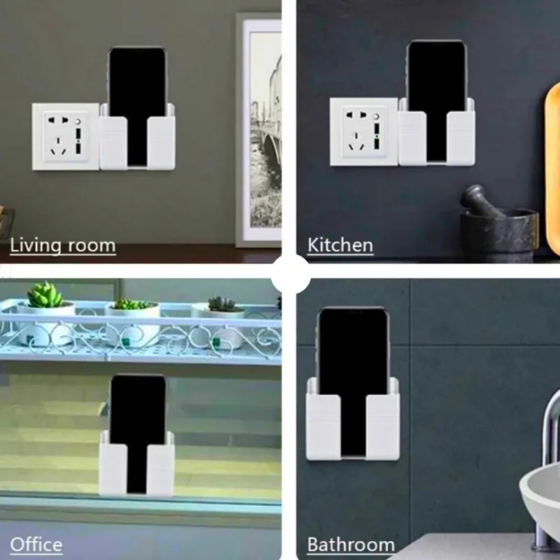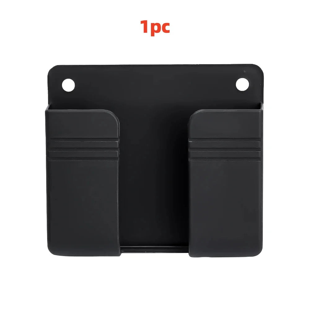 1pc Wall Mounted Mobile Phone Holder Multifunction Organizer Storage Box Remote Control Charger Stand Universal Accessories