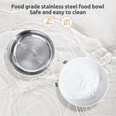 Metal food tray Memory function 3 AA batteries, priority adapter power supply. Removable metal food tray for easy cleaning. In the event of a power failure, the system automatically saves the current feeding parameters. Smart chip, automatic detection of motor stuck function. Protect the motor 17.8cmx16.3cmx32.3cm