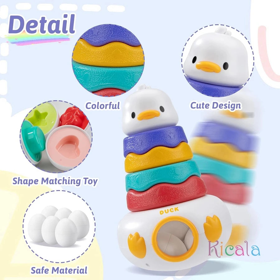 Baby Stacking Toy with Rings Montessori Toy 3-in-1 Matching Easter Eggs Stacking Tower for Stacking Game Educational Toys Gifts