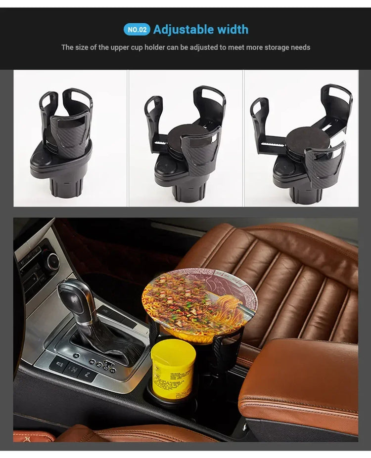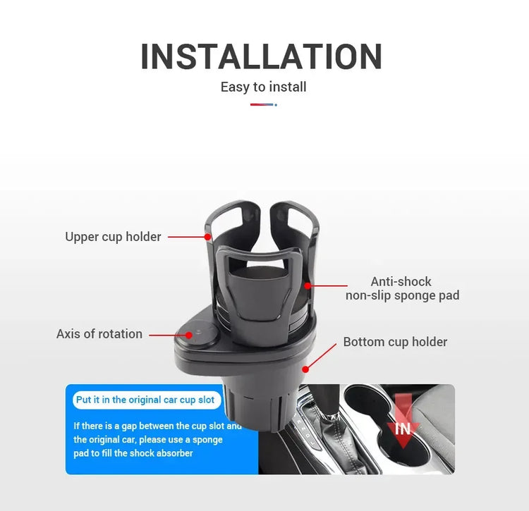 2. 360° Rotating Base - The base of the upper cup holder can rotates 360 degrees freely. The position can be shifted and adjusted according to the space of the car body, which is the most comfortable place for you to reach your drink, and save car interior space.