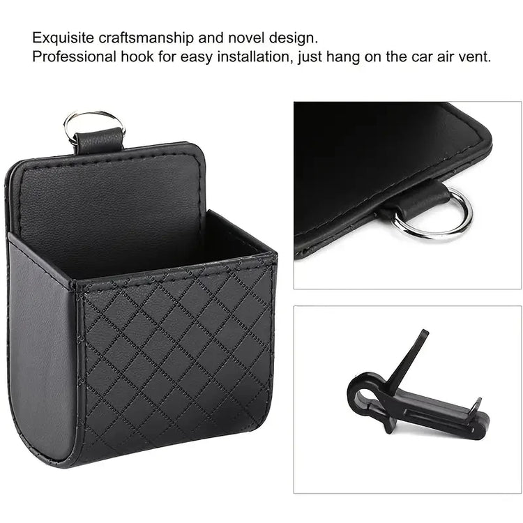 1pc Car Storage Bag Air Vent Dashboard Tidy Hanging Leather Organizer Box Glasses Phone Holder Storage Organizer Car Accessories.