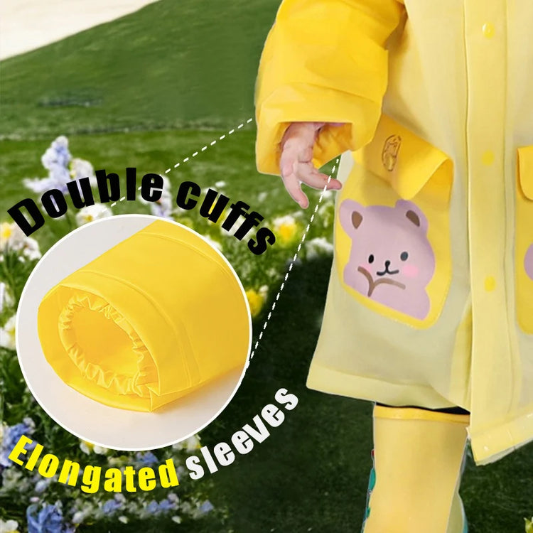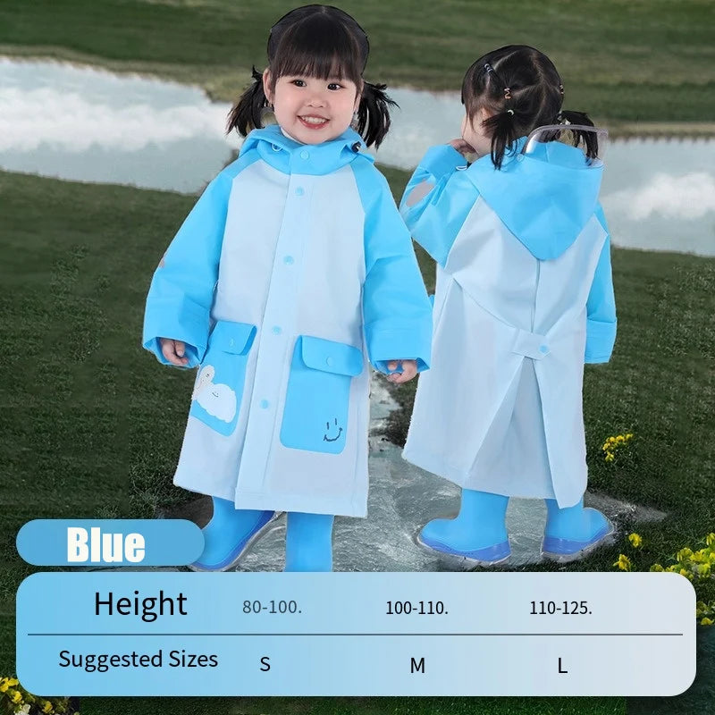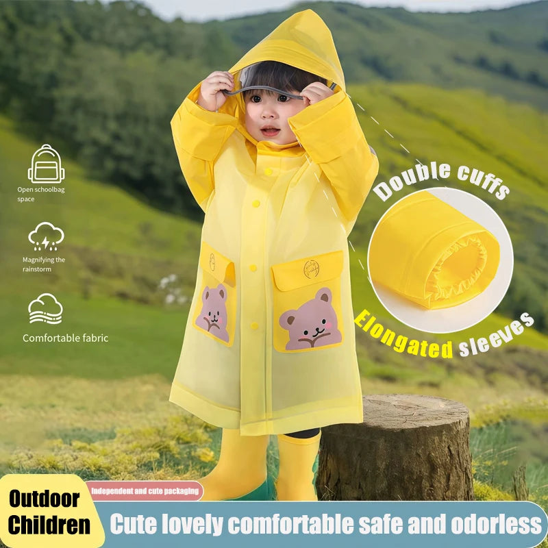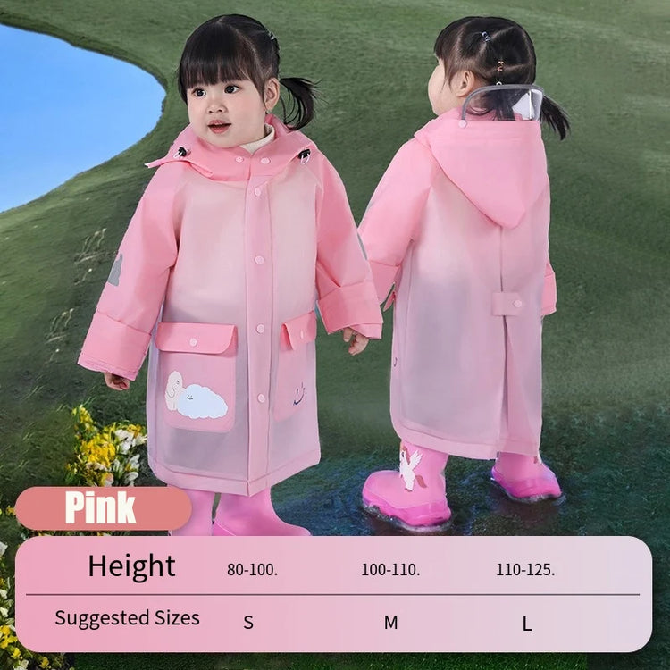 Children's Raincoats Cartoon Raincoats Boys Girls Rainproof High-definition Hat Brim Invisible Backpack Space Reflective Strip