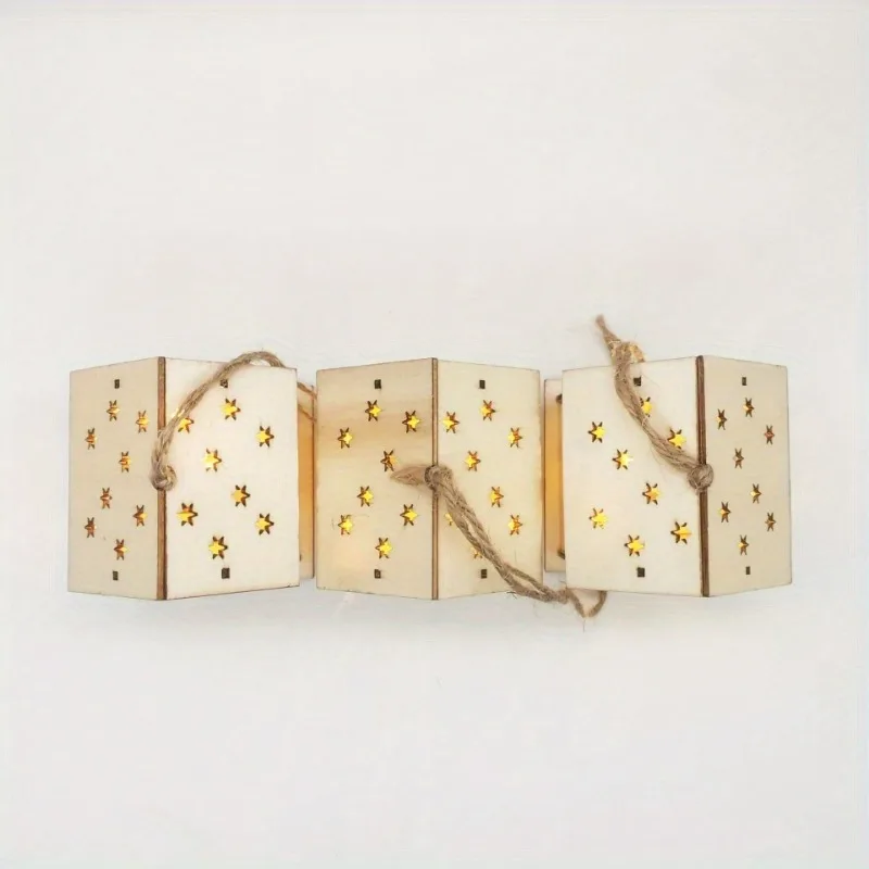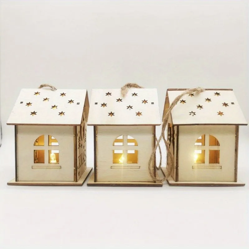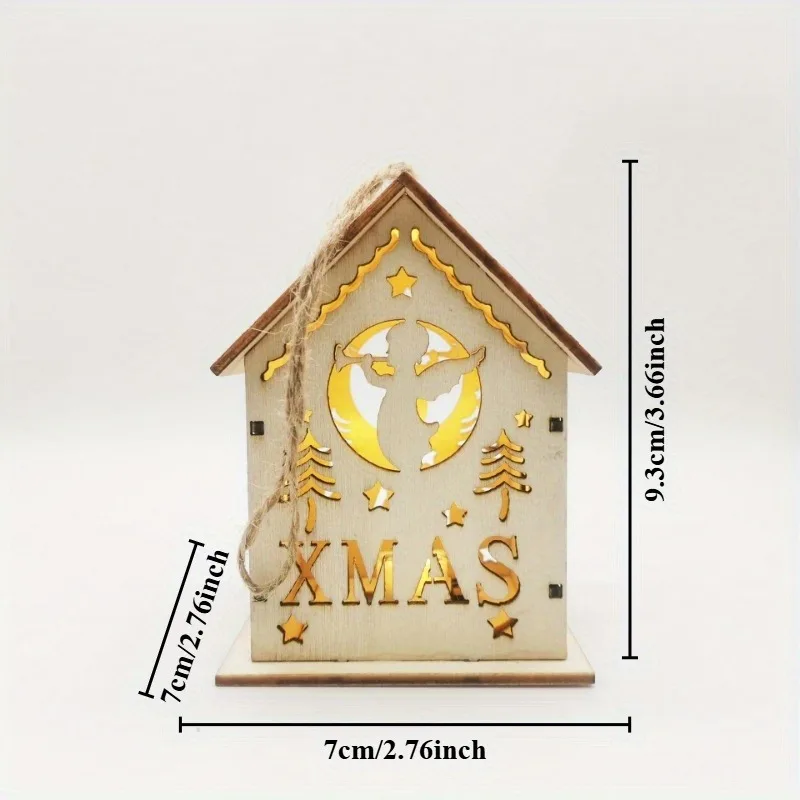 Christmas Wooden Crafts Wooden Christmas Small House Cabin Lighting Ornaments Pendant Christmas Tree Decoration