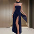Elegant Strapless Scarf Neck Pleated Dress