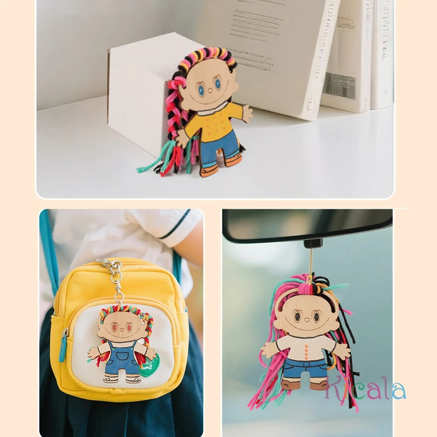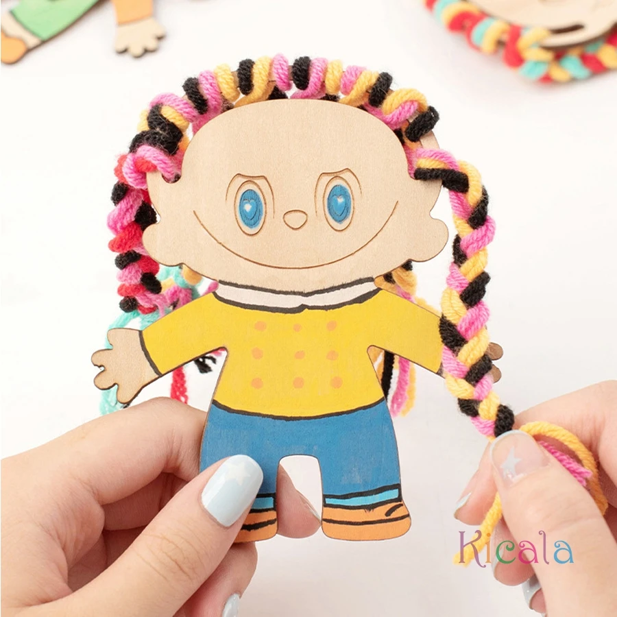 Girls Wooden DIY Craft Kit Toy Educational Handmade Braided Hair Painted Craft Christmas Birthday Gift for Kids