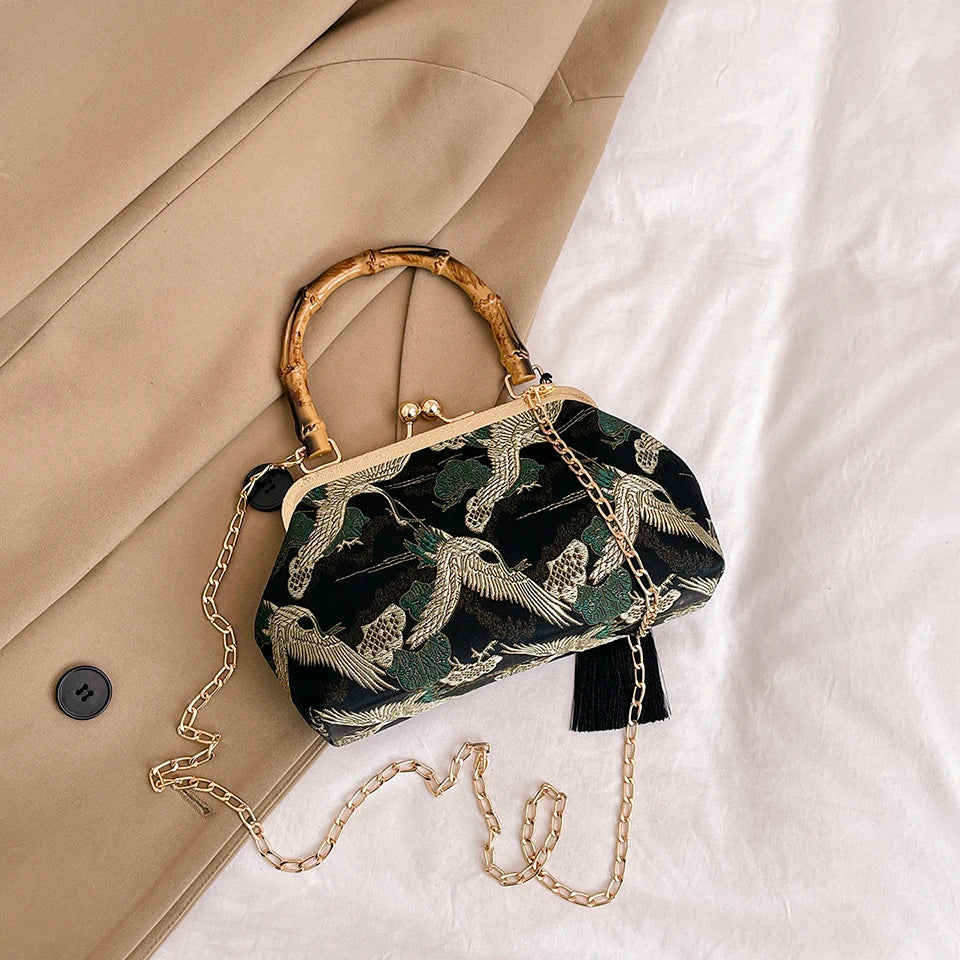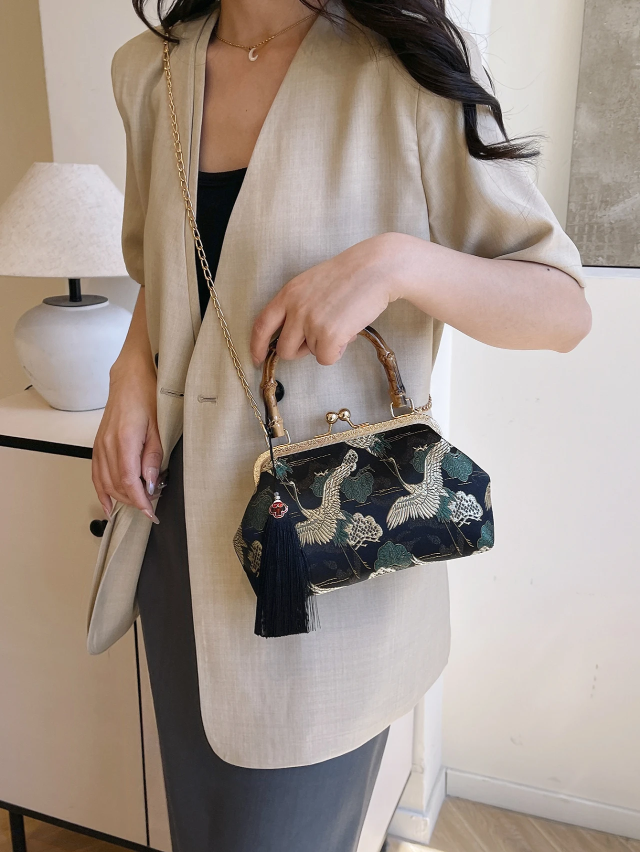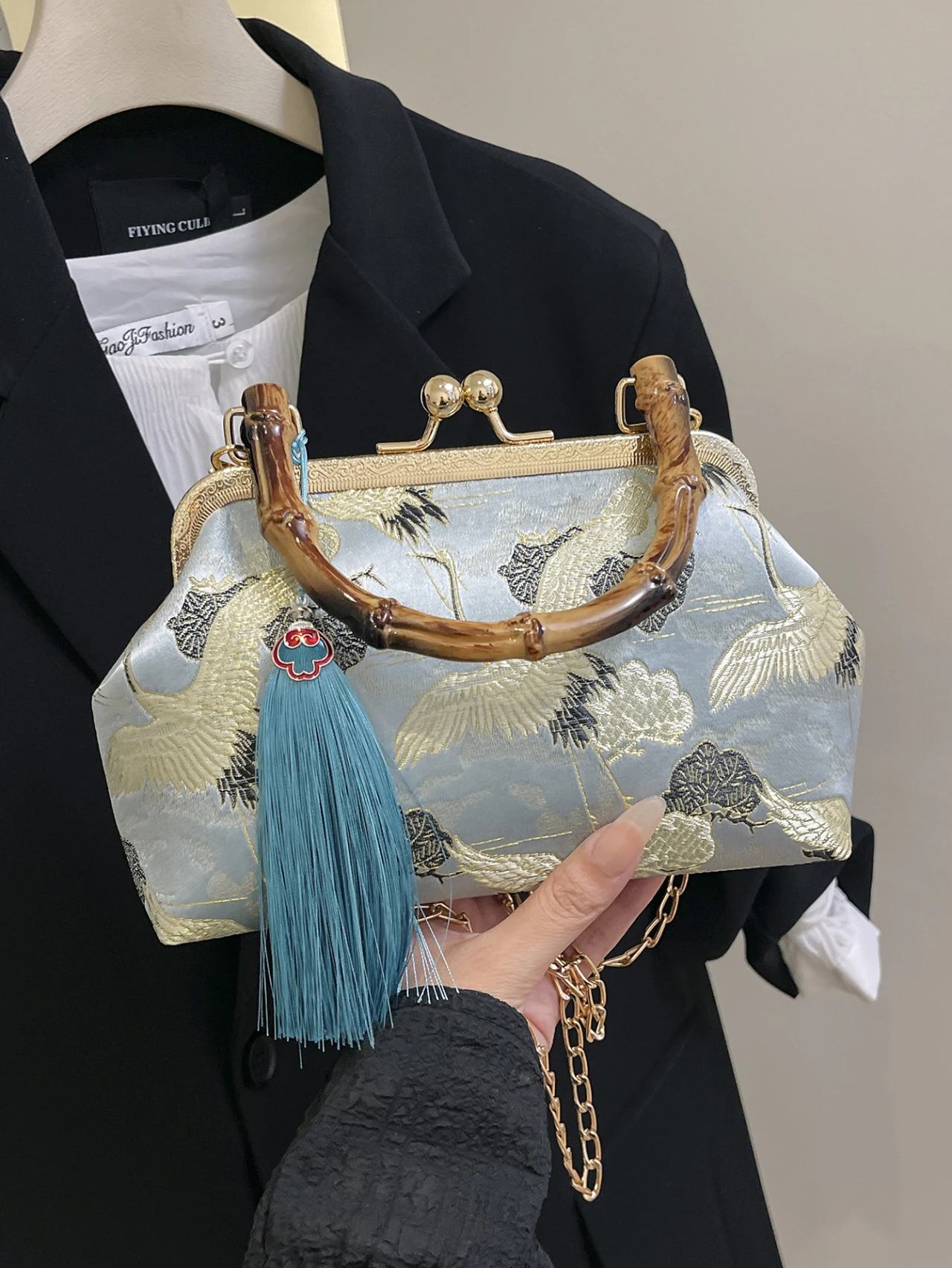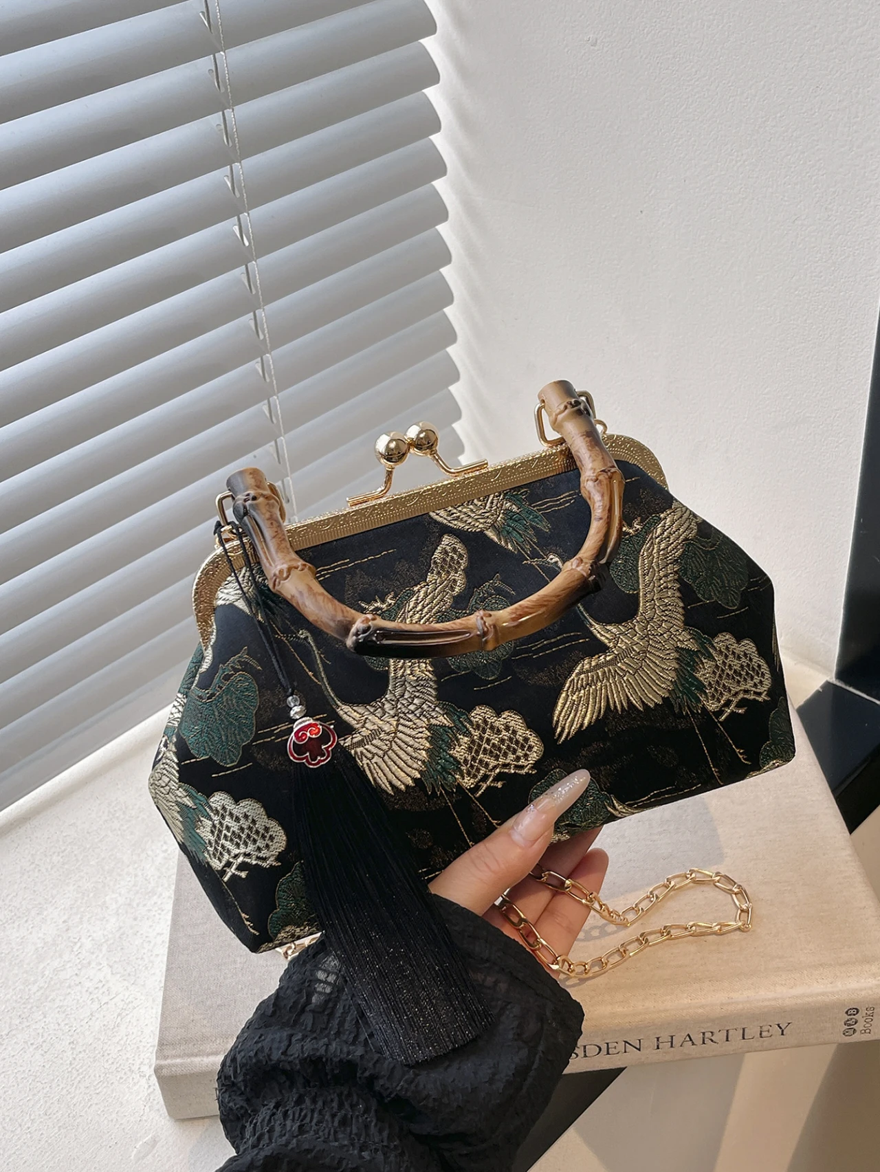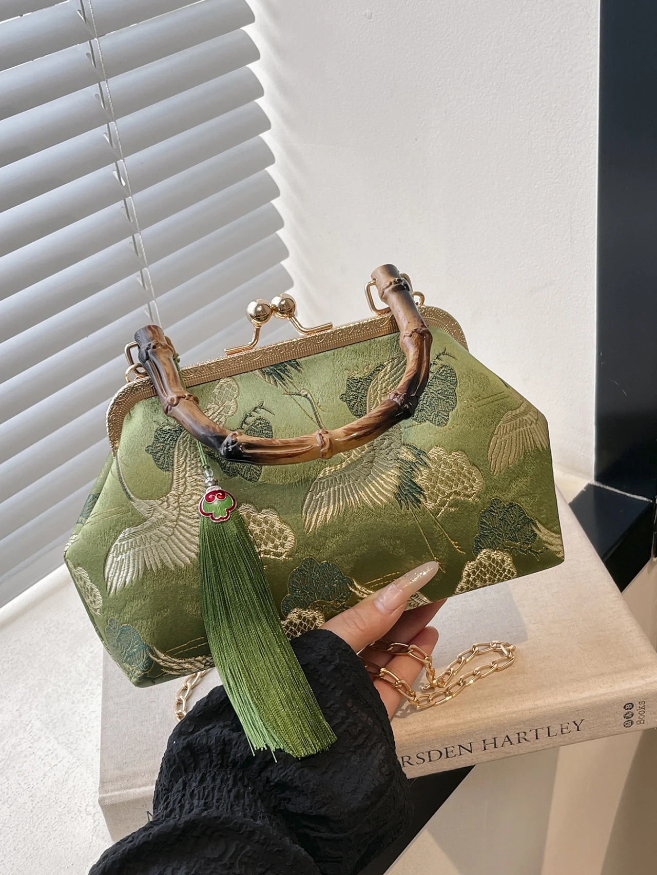 Personalized bamboo portable retro Chinese chain tassel lady bag