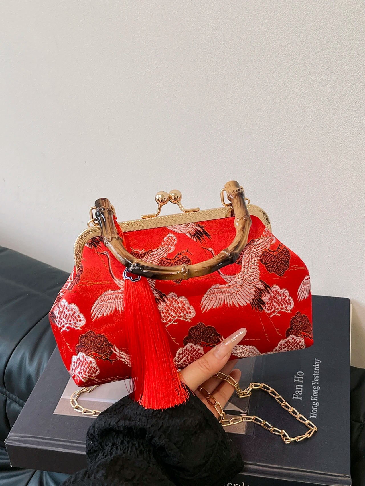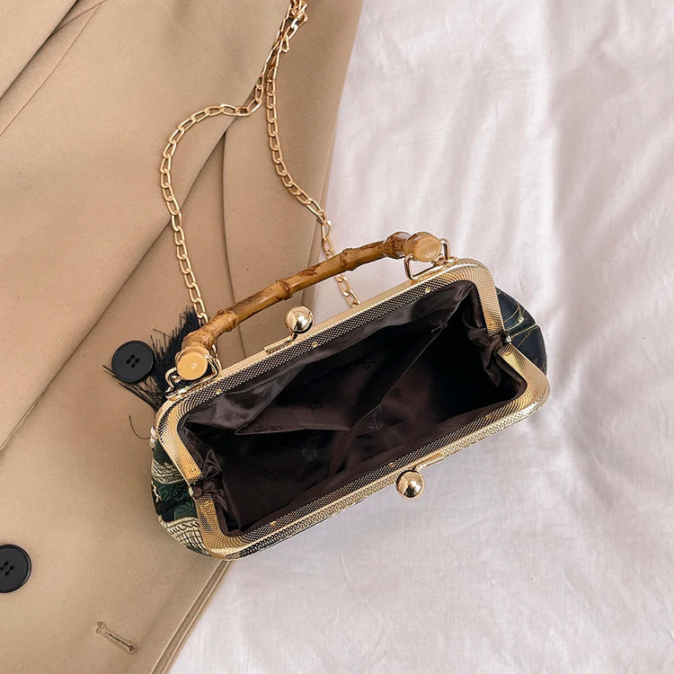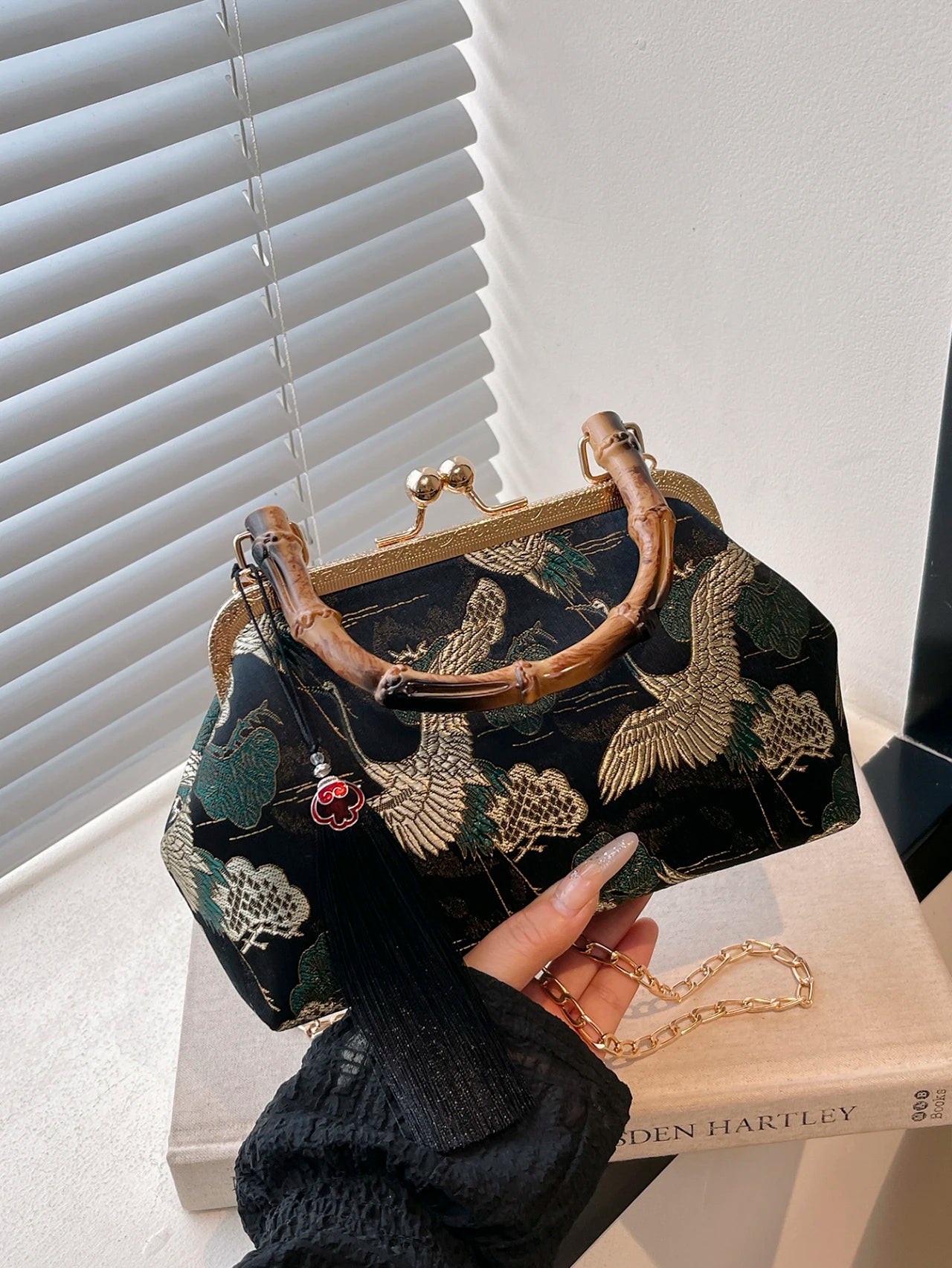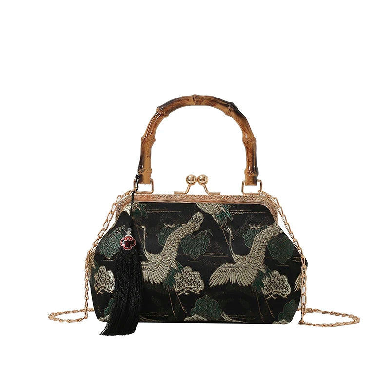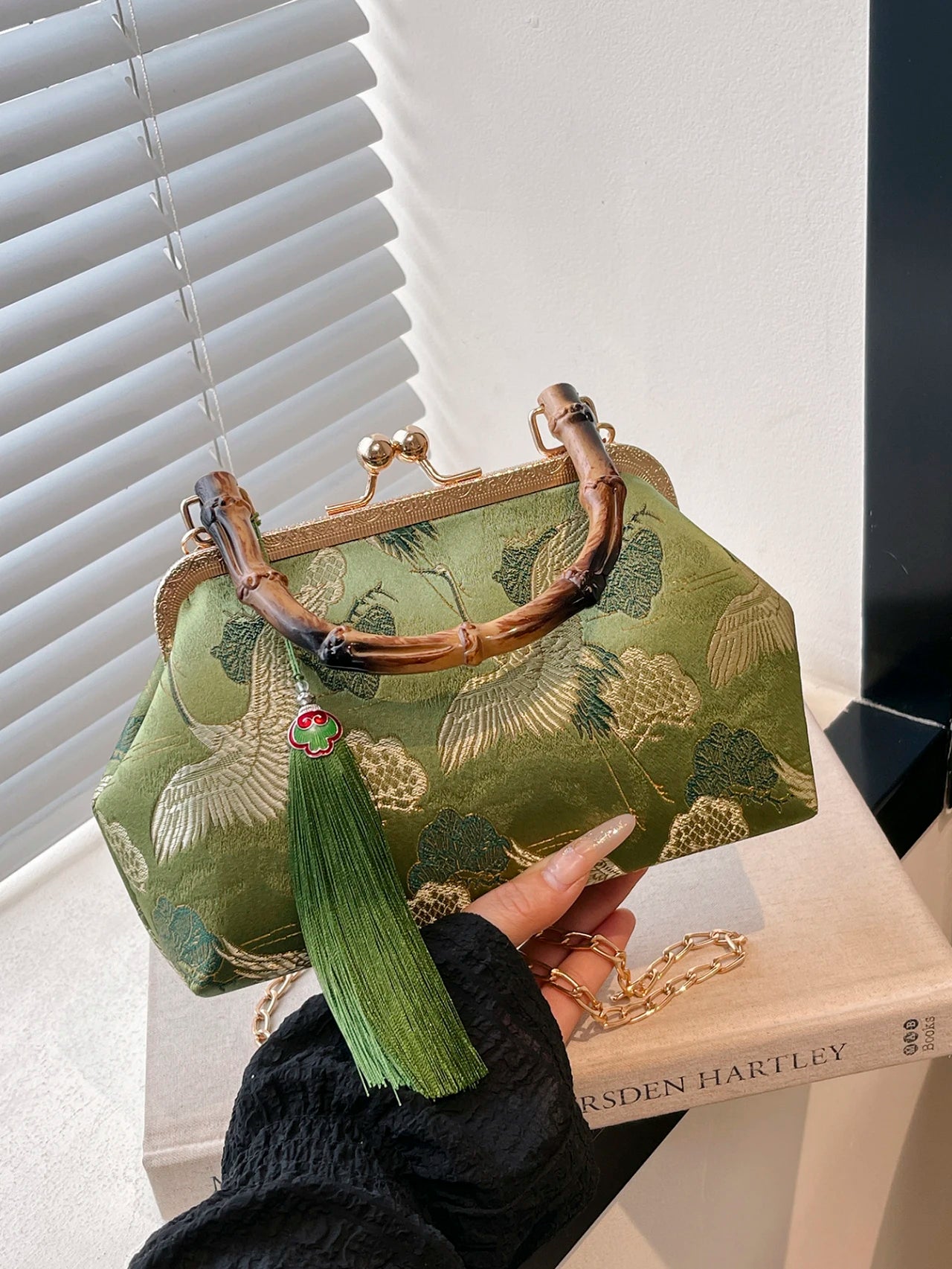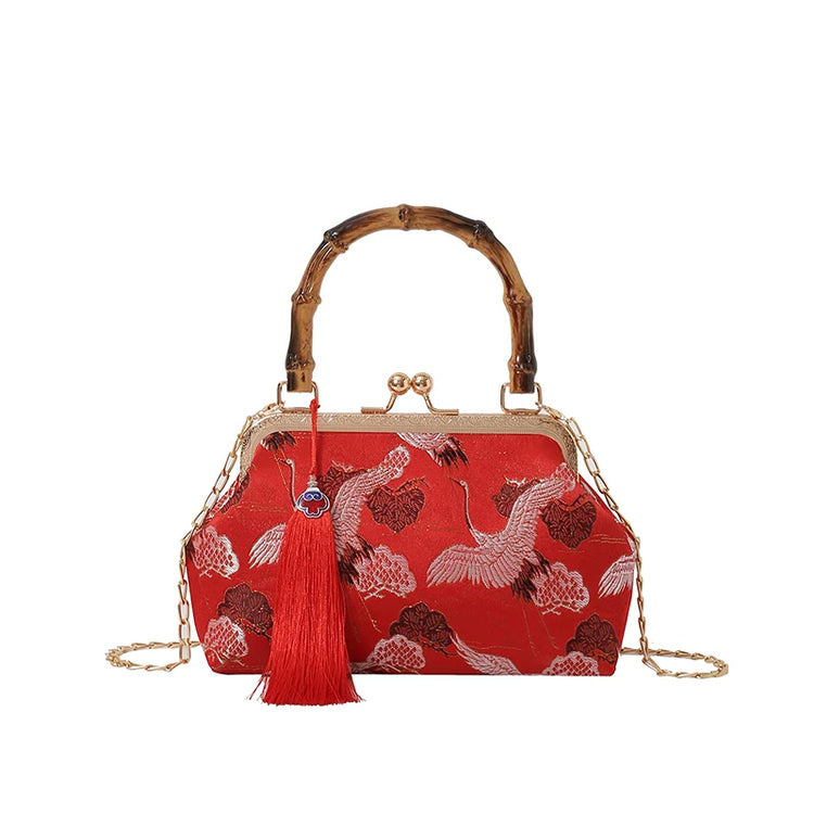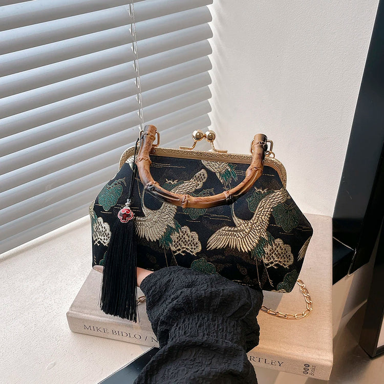 Personalized bamboo portable retro Chinese chain tassel lady bag