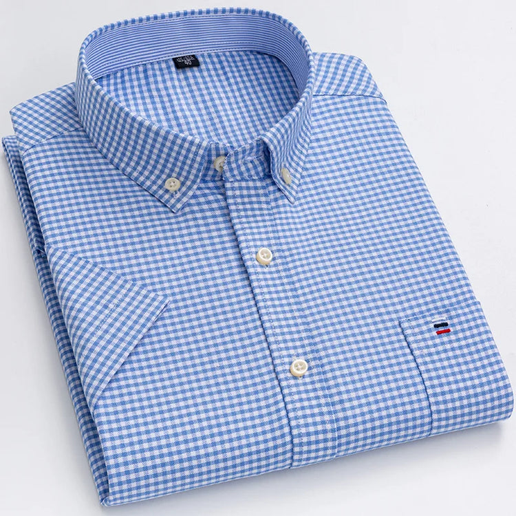 Stay stylish and comfortable this summer with this mens oxford short sleeve shirt, designed for men who want a versatile and breathable wardrobe essential. Made from 100% premium cotton, this shirt is soft, lightweight, and breathable, keeping you cool during hot days while maintaining a polished, professional look.The classic plaid stripe pattern gives this shirt a timeless appearance, perfect for business casual settings, office wear, or relaxed social outings. This mens oxford short sleeve shirt features a regular fit that complements all body types, providing comfort without compromising style. Its durable stitching ensures long-lasting wear, making it a reliable choice for everyday use.Available in a wide size range from S to 7XL, this shirt accommodates men of all shapes and sizes. The versatile design pairs effortlessly with dress pants, chinos, or jeans, making it suitable for work, casual gatherings, or weekend outings.Practical and stylish, this mens oxford short sleeve shirt is easy to maintain, wrinkle-resistant, and designed for all-day comfort. Whether dressing for business, leisure, or social occasions, this cotton shirt delivers a polished look with premium quality, comfort, and durability. Add this wardrobe staple to your collection for a smart, versatile, and classic summer style.