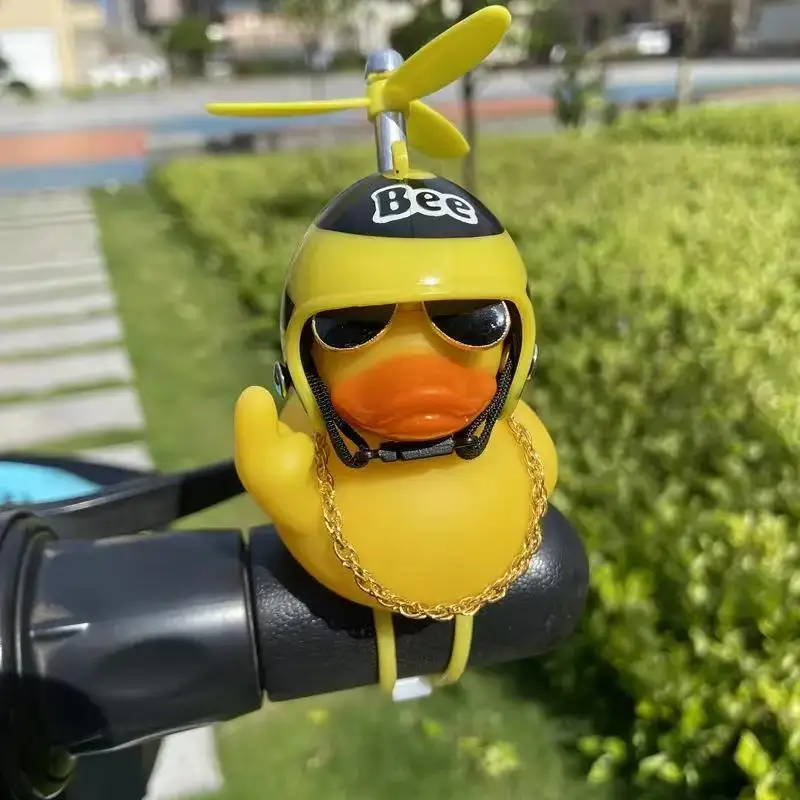 New! Funny Middle Finger Rubber Duck for Bike Car Dashboard Decorations Yellow Duck with Propeller Motorcycle Car Decoration
