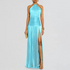 New Solid Pleated Sexy Hollow Halter Split Long Party Dress