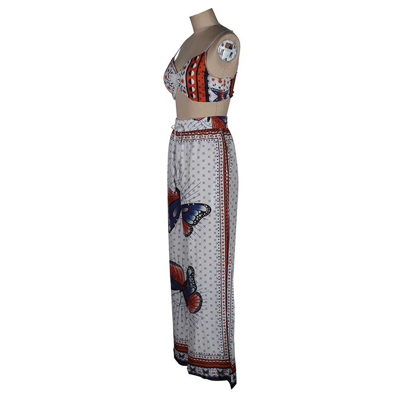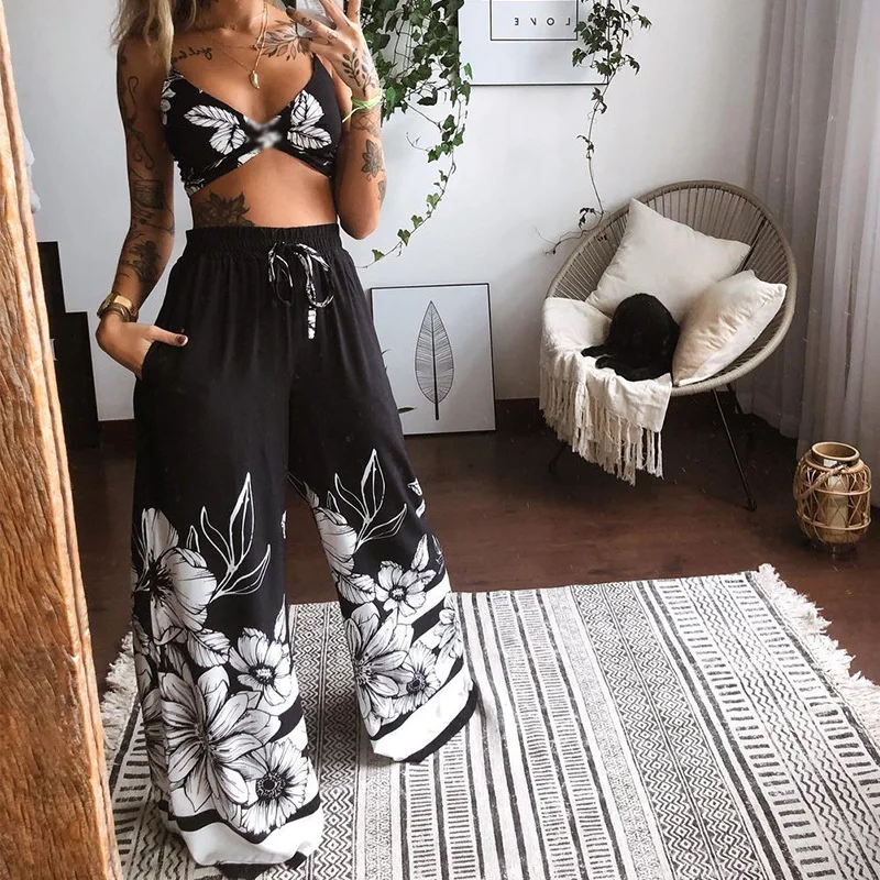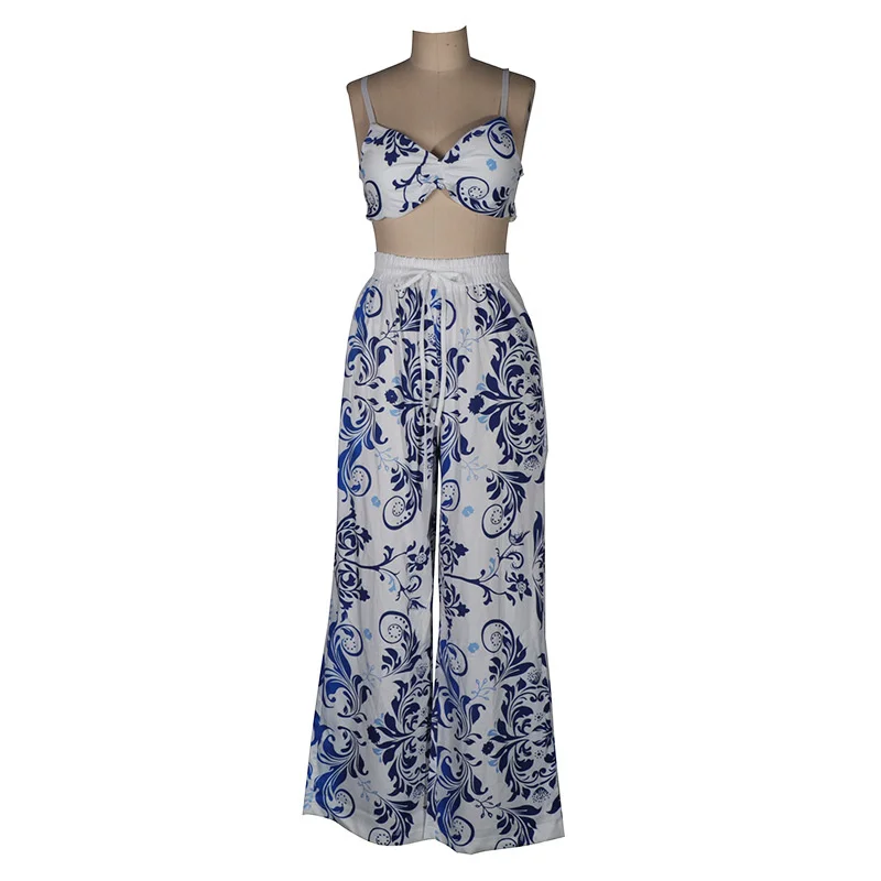 Printed on Sexy Wide-leg Pants Two-piece Set