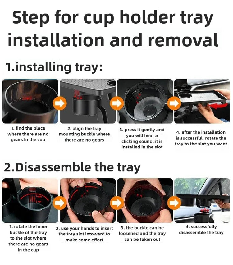 This car cup holder features a multifunctional design, serving as both a tray and storage space for your beverages and small items.