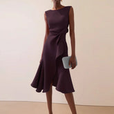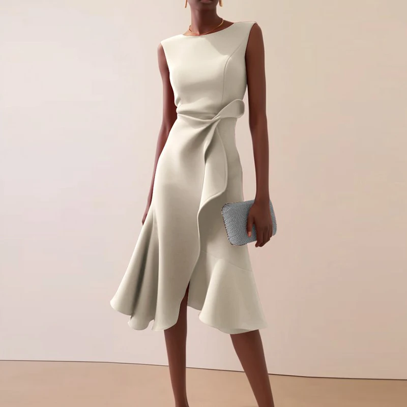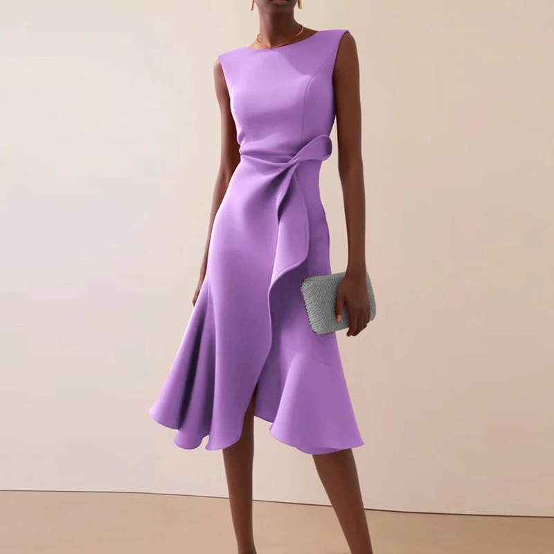 Vestidos Elegant O Neck Slim Ruffle Dress