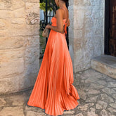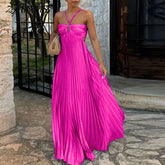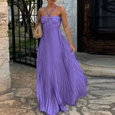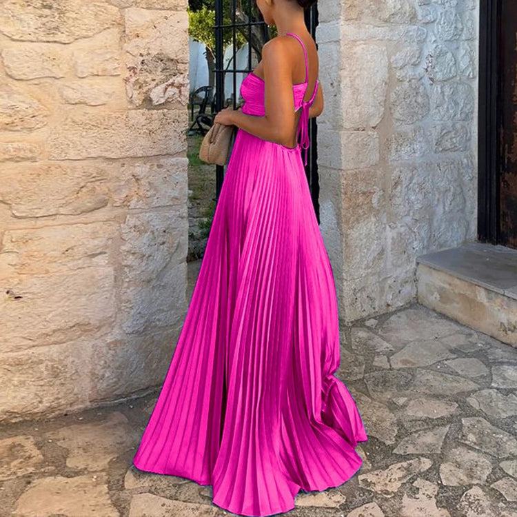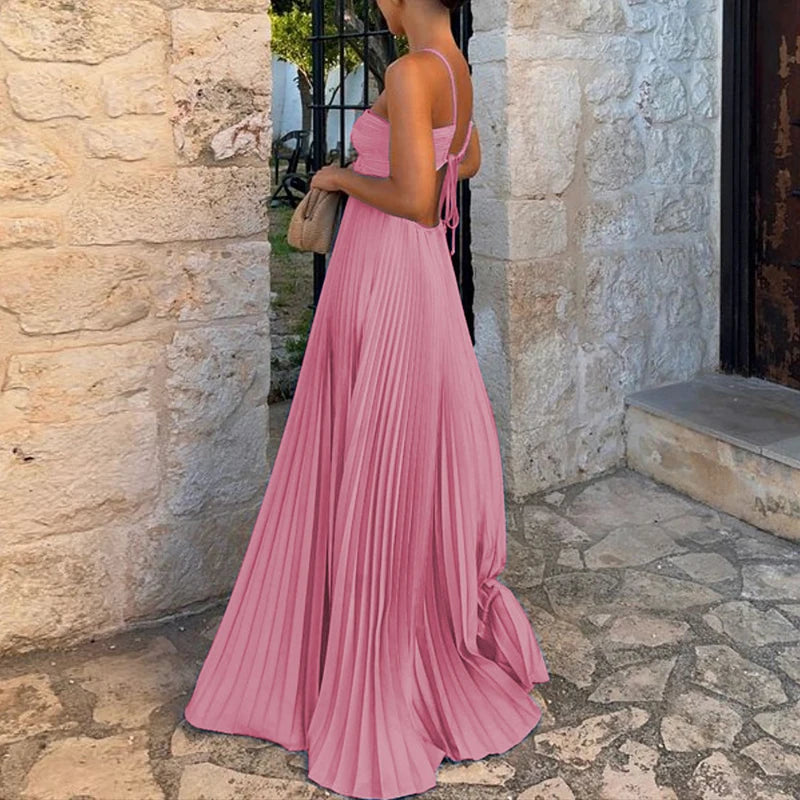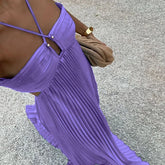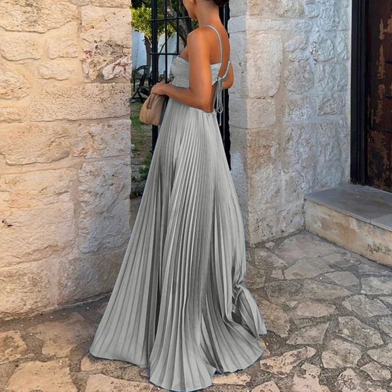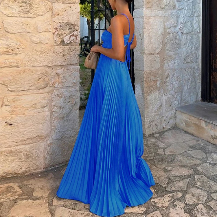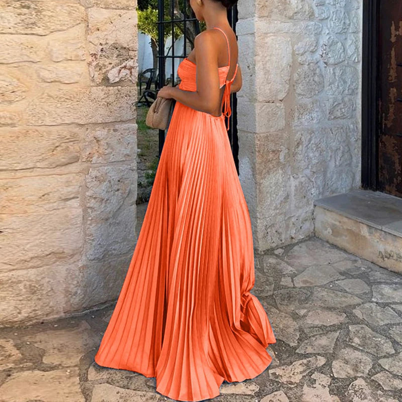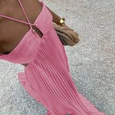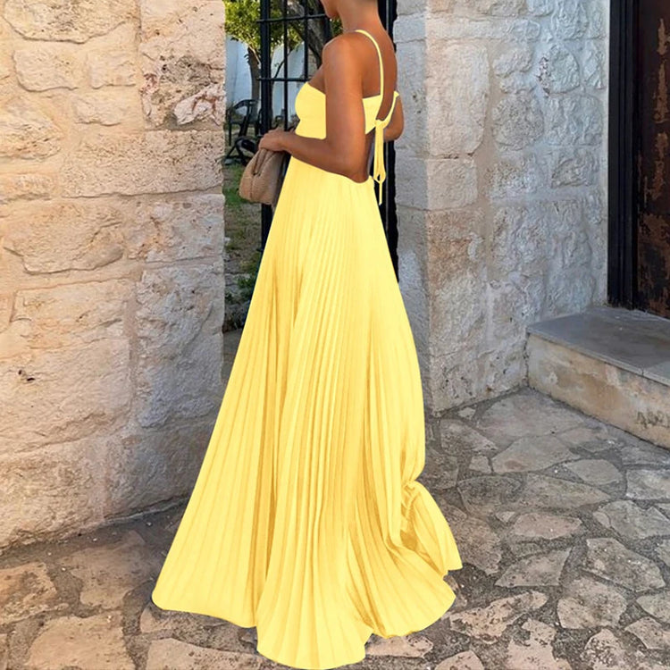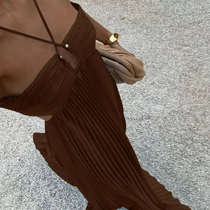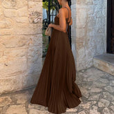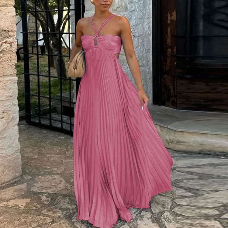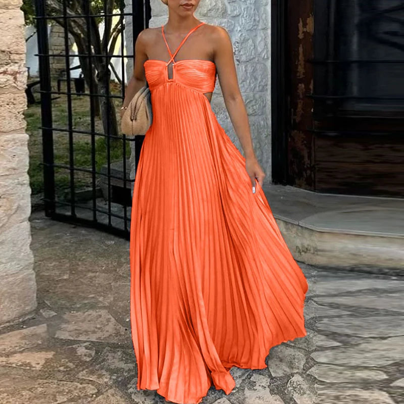 Vestidos Sexy Hollow Halter Robe Pleated Dress