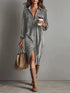 Women Turn-Down Collar Buttons Long-Sleeves Chic Casual Dress