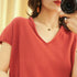 Womens Cotton-linen V-neck Short-sleeve T-shirt In Solid Colors