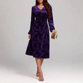 Womens Solid-Color Mid-Length Gold Velvet Embossed V-Neck Dress