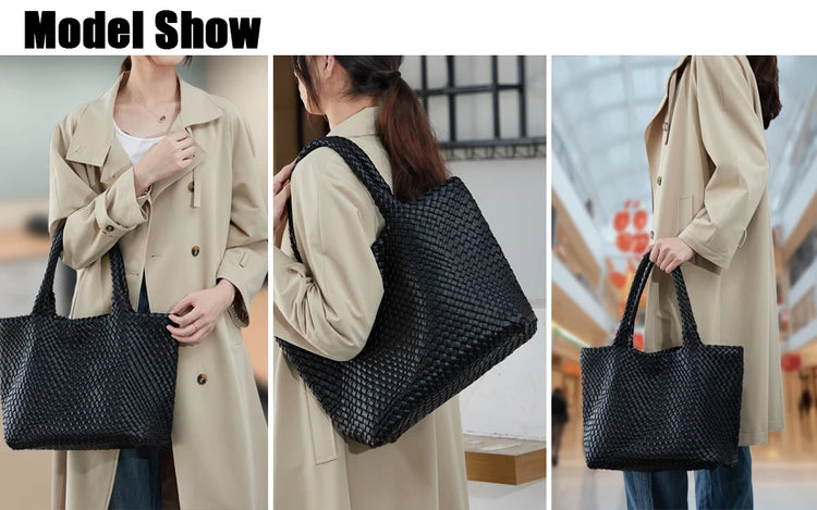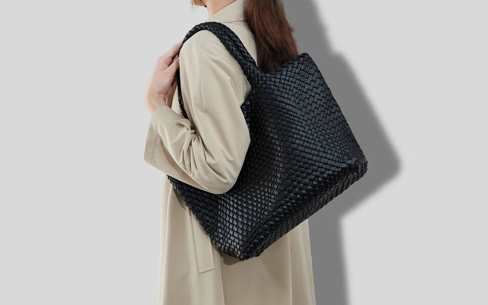 Woven Shoulder Bag for Women: Soft Leather Woven Bag