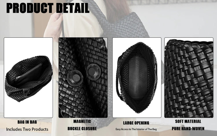 Woven tote bag for women, opening with a magnetic buckle, which supports quick access. You can pull away or bring both sides close to close the magnetic buckle, which is very fast and convenient. This women tote purse has a velcro-attached and removable cushion on the bottom to protect your belongings. This cushion can also be taken out and used alone.